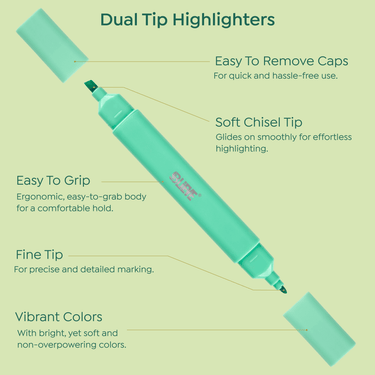 - Double Tip Design: Featuring both a chisel tip for broad highlighting and a fine pen tip for precise underlining and writing, this highlighter offers versatility for all your marking needs.