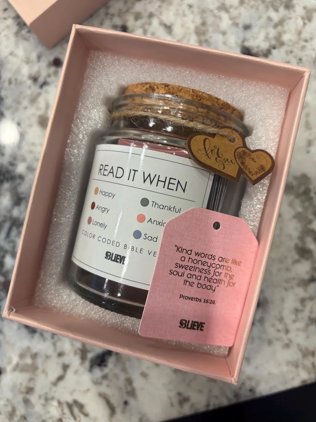 - Faith-Based Emotional Support – Find the perfect Bible verse for your emotions! Whether you're feeling happy, angry, lonely, thankful, anxious, or sad, this verse jar offers scriptural encouragement to uplift and strengthen your spirit.